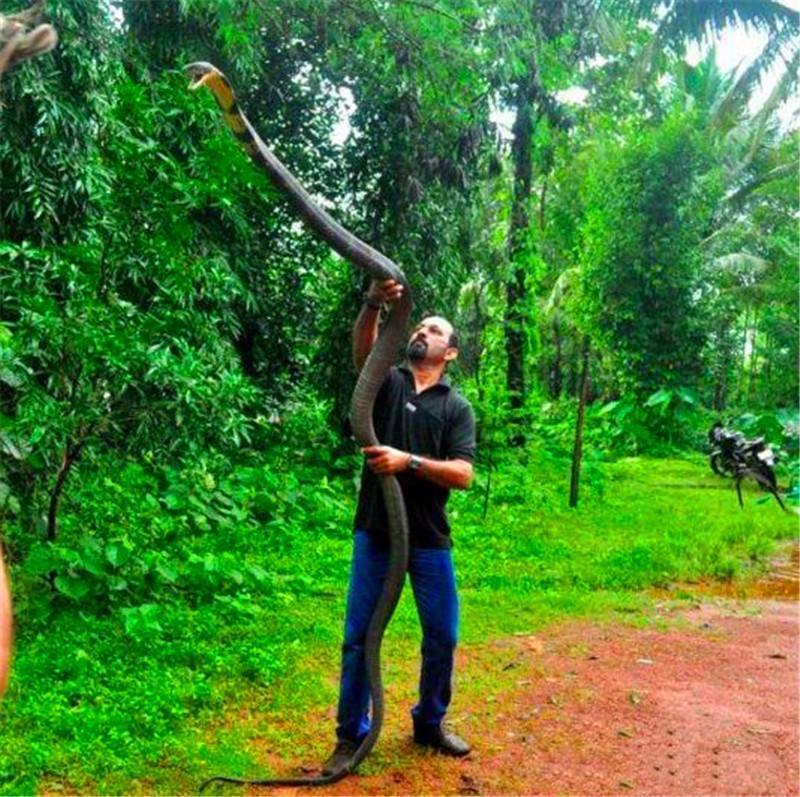 从1992年到2011年捕获的莽山烙铁头公开的资料中,莽山烙铁头长度大约在2~3.6米,体重最大则在2.9~4.1千克之间,从毒蛇角度而言,这个体型已经很大了,但和眼镜王蛇相比,那还是小巫见大巫了!眼镜王蛇一般的体重都在6千克以上,最高纪录是2017年印度南部卡纳塔克邦阿古姆雨林研究站的Ajay Giri捕获了一条4.27米16千克重的野生眼镜王蛇。