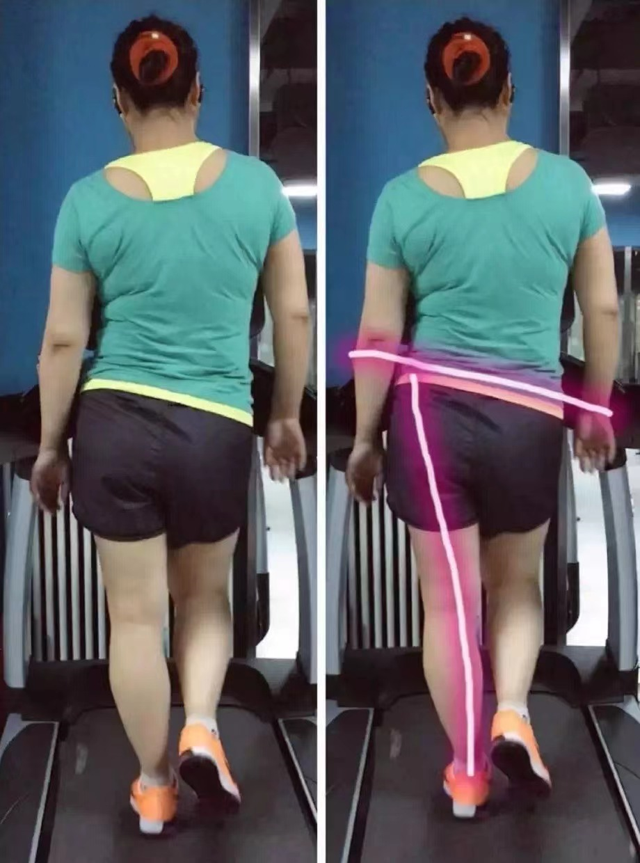 这样一来,骨盆就会往右侧明显下沉,整体看上去,走路时臀部扭动幅度变得很大
