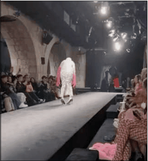又细又长的高鞋跟,外加包身裙的群口过窄,造成了模特台步很难正常踢出,才是「白发魔女」摔台的真实原因