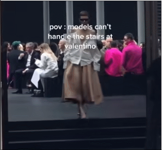 因为就在去年的「巴黎春夏时装周」的华伦天奴秀场上,至少有三位模特遭遇了类似的「高跟鞋事故」。