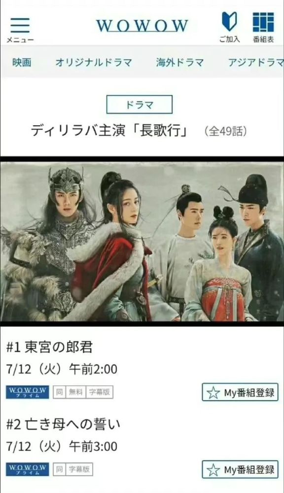 6月24日,由浙江华策影视股份有限公司、上海琰玉影视文化传媒有限公司、企鹅影视、上海琰然影视文化传媒有限公司联合出品,朱锐斌执导,迪丽热巴、吴磊领衔主演,摩登兄弟刘宇宁、赵露思、方逸伦等主演的古装传奇剧《长歌行》在日本定档,剧集将于7月15日在WOWOW电视台播出。该剧根据夏达的同名漫画《长歌行》改编,讲述了李建成之女李长歌在内廷生变后侥幸逃生,女扮男装隐瞒身份后在复仇中逐渐成长的故事。