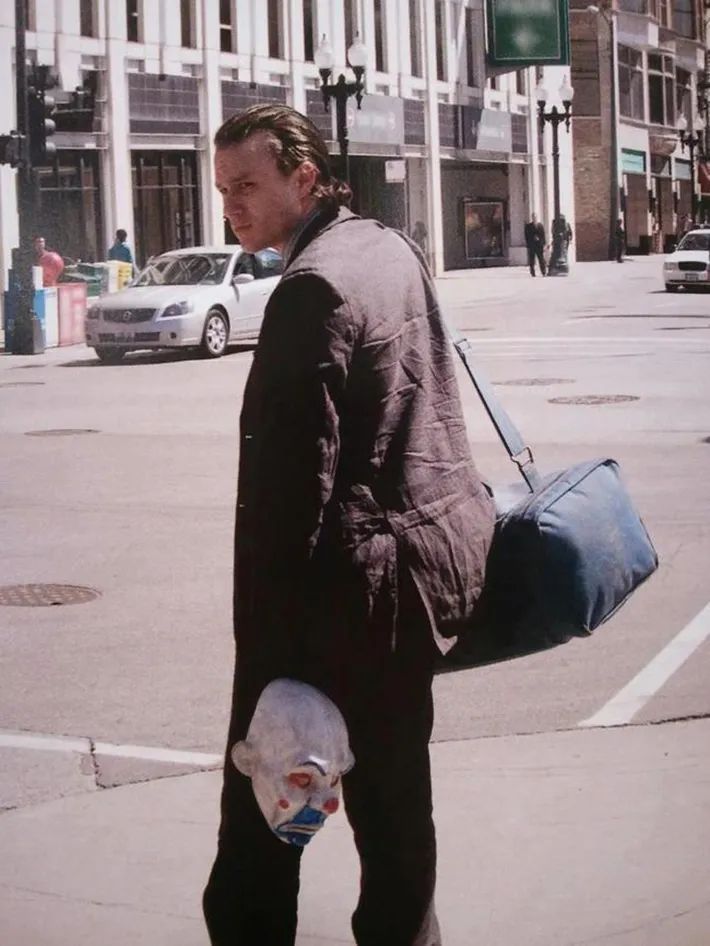 1、希斯·莱杰为电影的最后一幕练习,当时他悬挂在摩天大楼上。