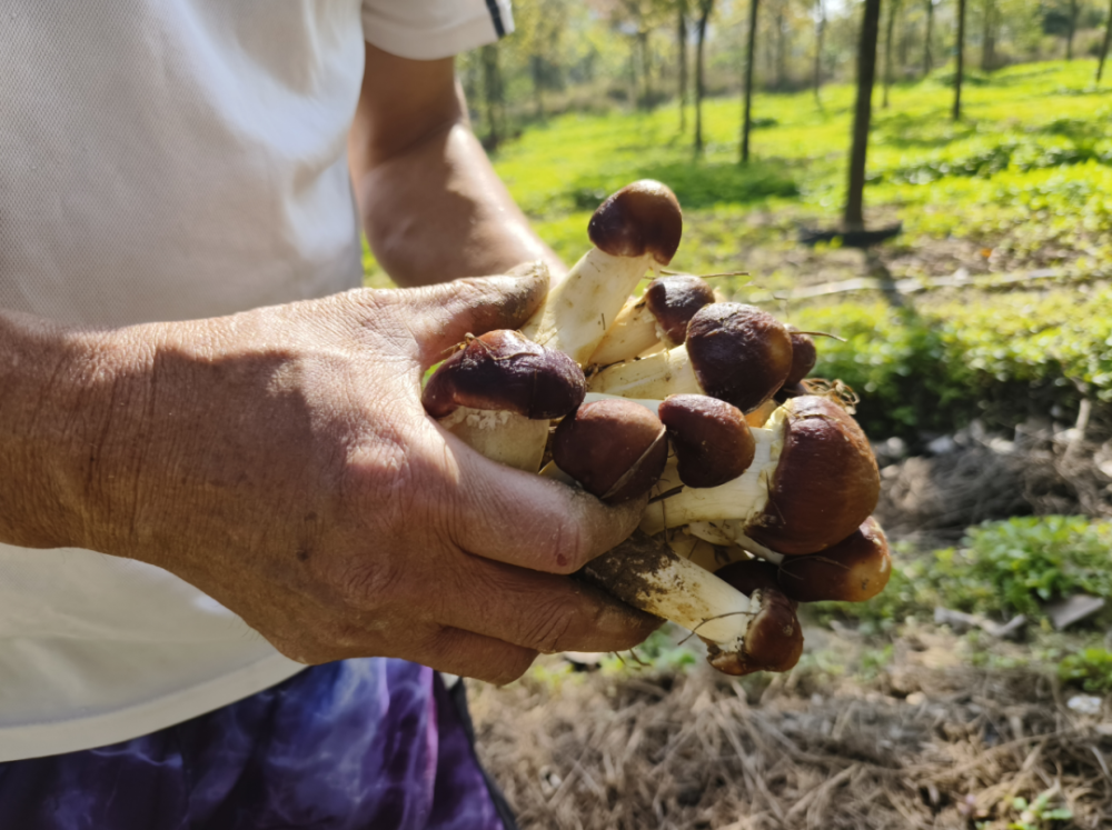 “我们种植的是‘中科1号红松茸’,不但营养丰富、口感极佳,而且产量高。”姚家进介绍道,红松茸适合种植在树荫下,可利用稻草、谷壳、秆(壳)、木屑等废弃材料作为化肥。