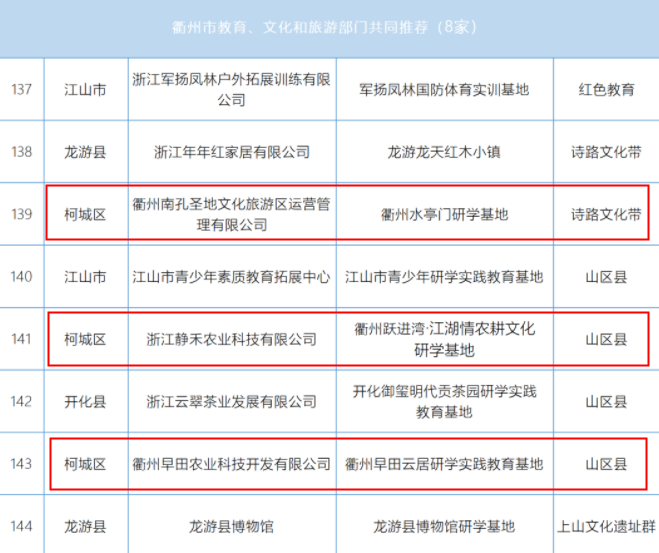近日,浙江省教育厅与浙江省文化和旅游厅公布了《浙江省中小学生研学实践教育基地名单(第三批)》名单。其中衢州水亭门研学基地、衢州跃进湾·江湖情农耕文化研学基地、衢州早田云居研学实践教育基地上榜。