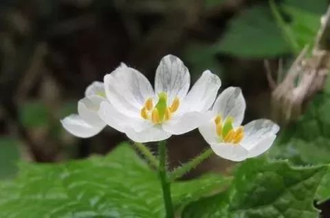 山荷叶在平日里是纯白色的小花,毫无特色,但是一旦淋雨或者沾水,它的花瓣就变成了透明色,像穿上了一件隐身衣!