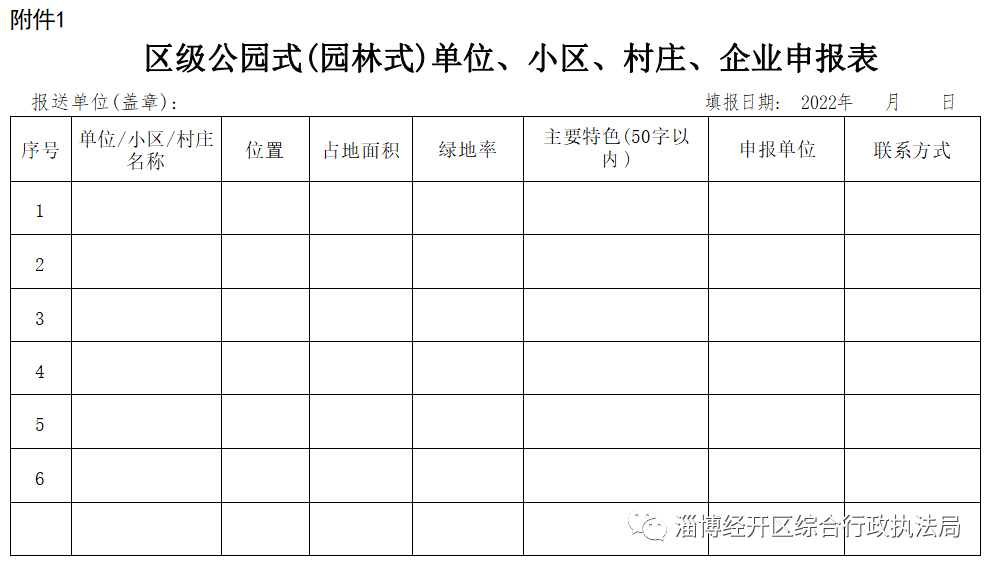 请有意向单位把附件1报到淄博经开区综合行政执法局园林绿化科