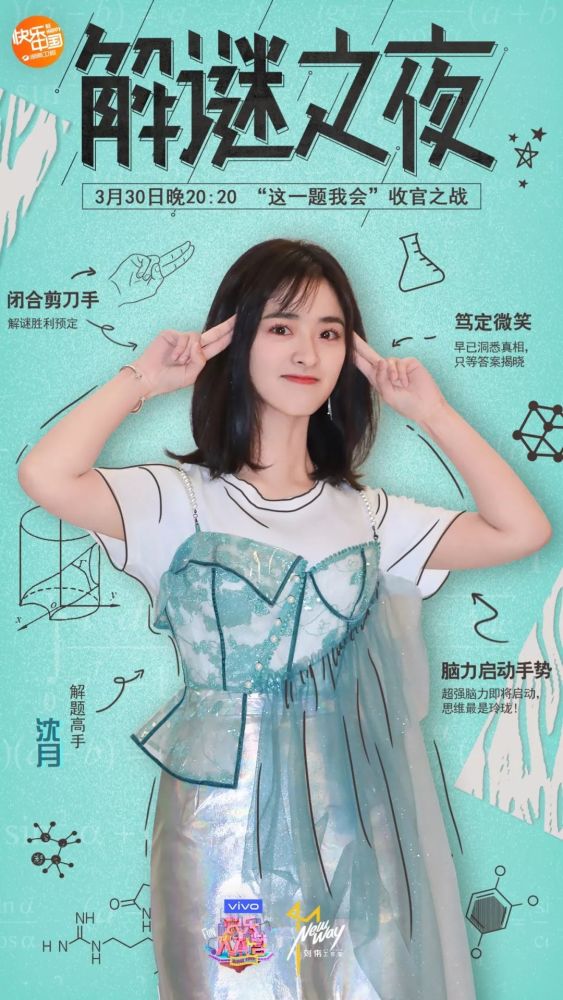 玲珑思维,开动脑力,2019年3月30日,《快乐大本营》开启解密之夜,沈月变身解题高手,笃定微笑战胜谜题。