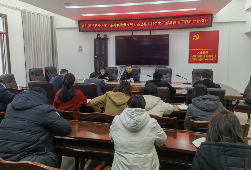 县乡村振兴局召开全体干职工会议,传达贯彻全县高质量发展暨县乡村负责干部真抓实干动员大会、党务工作等会议精神,动员全体干职工发扬“紧起来、干起来、跑起来”的真抓实干精神,完成好2023年各项工作任务。2023年,该局将以提高脱贫人口收入为目标,持续加强防返贫监测,加强资金项目监管,加大产业就业帮扶力度,争创巩固脱贫攻坚成果省级样板区。