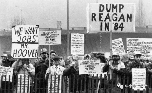 另一边,在沃尔克的咬牙坚持下,通胀从1982年开始下降,经济有序复苏,那些被裁的员工却再也没有回去过...