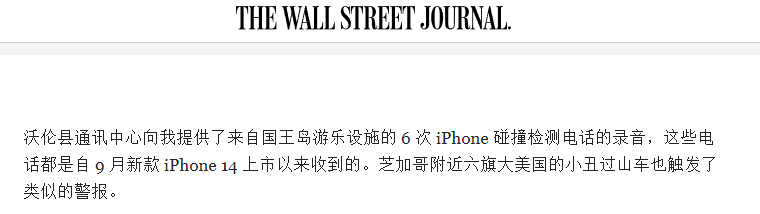 当地通讯中心表示,自 9 月新款 iPhone 14 上市以来收到,这个游乐园已经收到6起自动报警事件,芝加哥附近的过山车也有类似的警报。