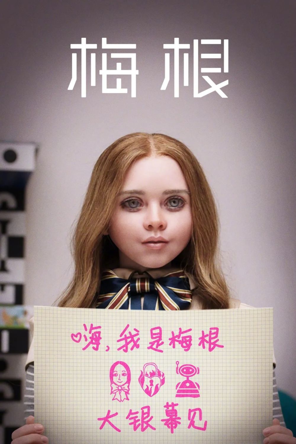 梅根(M3GAN)是一个具备高度人工智能、栩栩如生的玩具人偶,被设计成小孩子最好的玩伴和令家长最安心的盟友,能够借由聆听以及观察学习人类行为,并且成为她照顾的小孩的朋友、老师、玩伴和保护者。