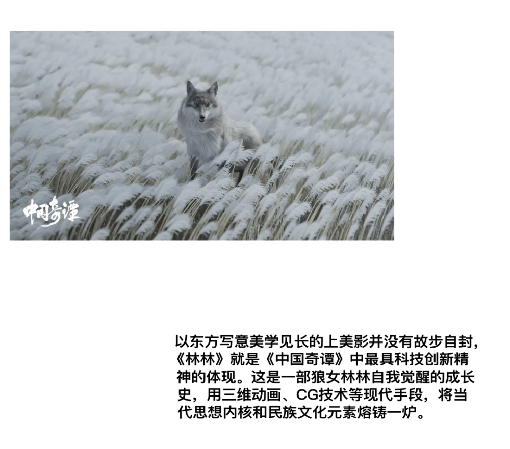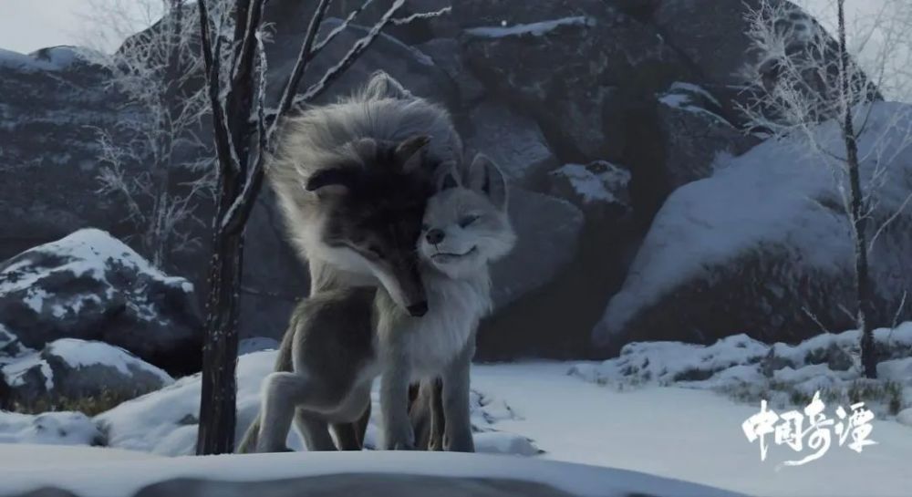开头便以低饱和度、低反差的色调渲染出苍茫雪原,寂寥感生发而出。这部三维制作的动画短片在设计和制作中并不一味追求1:1 还原真实感,而是调整了一些动画帧,更具画意感。狼少女林林因孤独与人类小孩玩闹,为了得到认同,不惜冒着暴露狼族的风险,将狼牙展示给人类伙伴,果不其然被猎人发现身份,狼妈妈在激烈的战斗中为护女孩而死,觉醒的女孩坠崖而下……