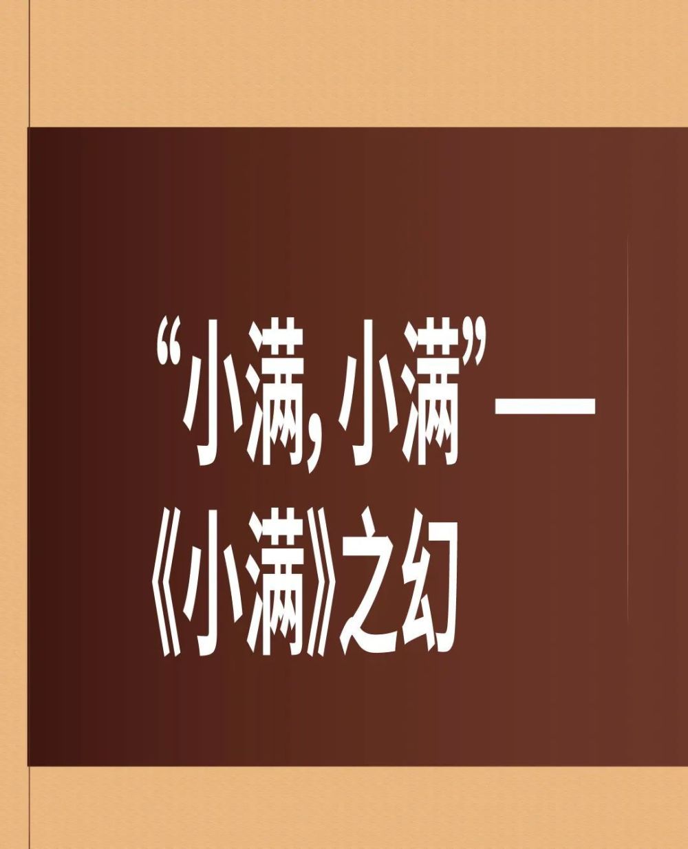 这是一则反映古代儿童内心幻想与阴影的故事。儿童小满一直将童年阴影视作一只“大”鲶鱼,噩梦频发。而历经院里废弃水井的“探险”之后,小满梦中的鲶鱼却变得十分友好。妈妈带小满上街,目睹了鱼摊上死去的鲶鱼,小满内心的那块阴影随之消解,原来害怕之物也会经历不幸,此刻他已然长大。