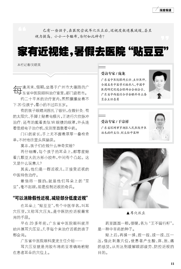 本文聚焦“耳穴压豆”这一中医适宜技术在临床用于近视防控的开展情况和效果,旨在为正奔波在孩子近视防控路上的家长提供一个新的路径。