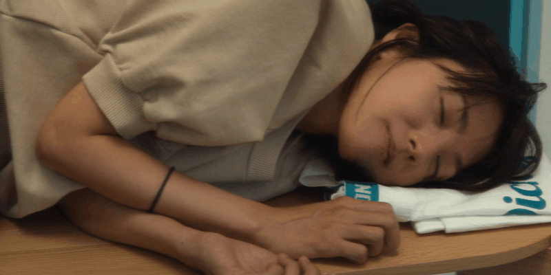 他乖巧的坐在一边,看着也英的睡姿,偷偷学她的模样,嘴角不经意的笑容,整个洗衣房都充斥着暧昧。