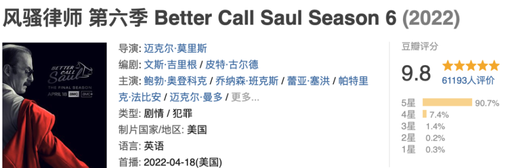 可以不夸张的说,纵观院长看过的所有英美剧里,《风骚律师》在讲故事的层面上都是最顶级的那一层了。如果你是美剧迷,那就一定要去看看,更何况现在已经全部更新完了!