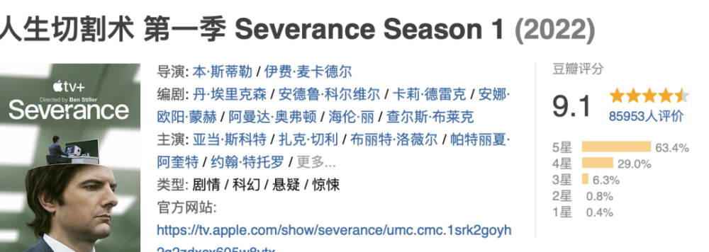 《人生切割术》是一部职场惊悚剧,男主是一名「分离者」。