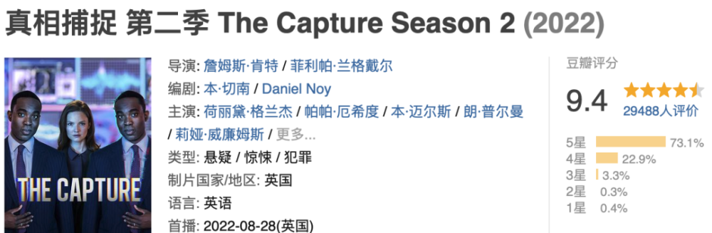 口碑极佳,堪称年度最佳英剧,第二季可以说是全新故事,目前豆瓣9.4分。