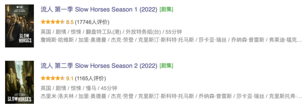 非常难得的是,该系列一共六季,豆瓣上没有一季的评分是低于9.4...
