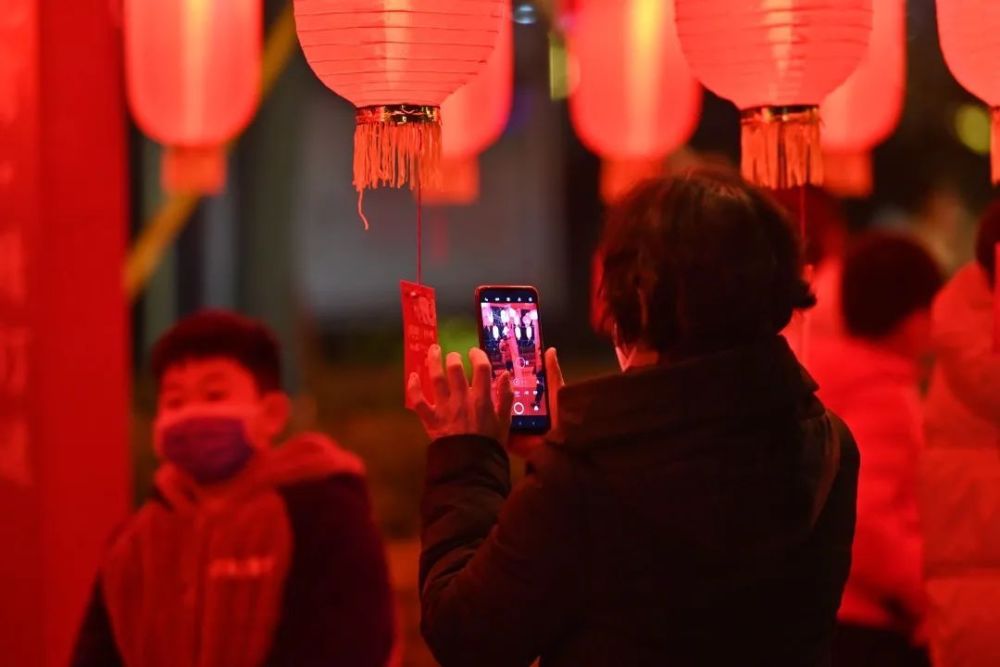 街道两侧,各式花灯璀璨夺目。宫灯造型典雅,形式多样,工艺精湛,用料讲究,绽放出雍容华贵的气度。