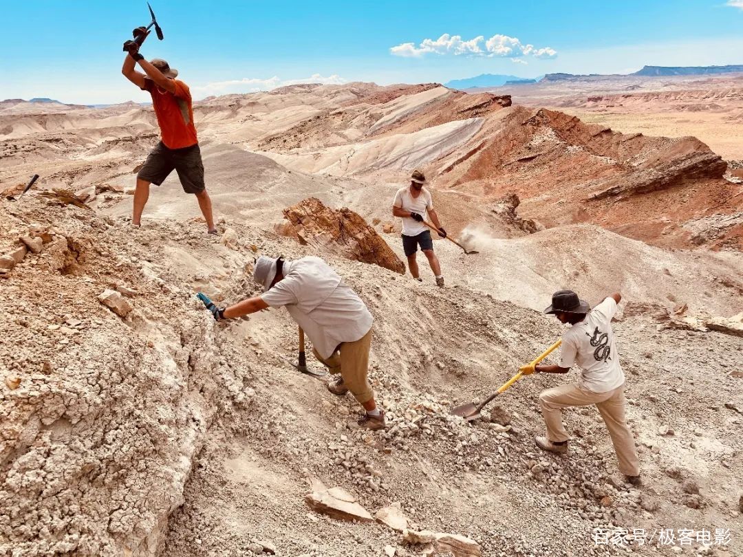 △ 笔者和研究团队在美国犹他州厄兆龙的发现地点的发掘工作整个暴龙家族的历史非常悠久,从侏罗纪中晚期直到恐龙灭绝,大约出现有1亿年的时间,而9500万年前的小型厄兆龙的发现,代表暴龙家族演化成广为人知的大型霸王龙主要是集中在最后的1600万年而已。