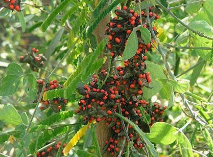 红豆种子质坚,色泽华美,可做装饰品,外用也可以用来治皮肤病,但种子本身却有剧毒,毒性非常可怕,中了相思子毒素的人会全身内脏溃烂,死的很痛苦。