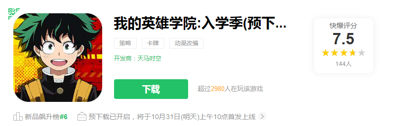 作为卡牌策略玩法的《我的英雄学院:入学季》在10月31日就要上线了,有兴趣的小伙伴到时候可以届时前往好游快爆下载体验!