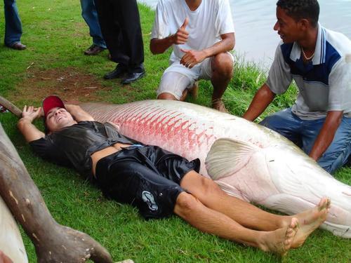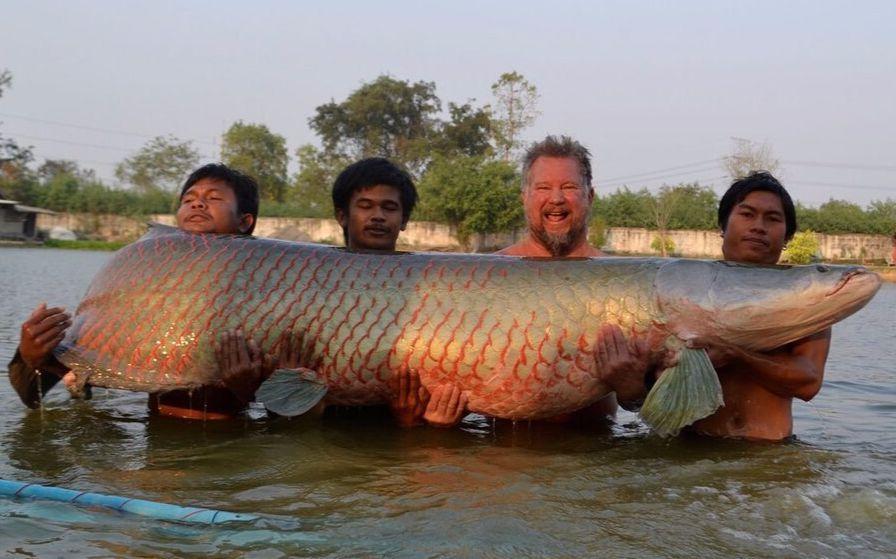 2015年2月27日,泰国的4名男子用2小时,将一条重达460斤的巨骨舌鱼捕获,还创下世界纪录。