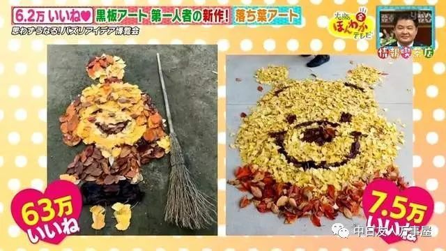 日本有一位名叫滨崎祐贵的高中美术老师,凭借着利用落叶拼出各种精美的画作,在社群网站博得上万名粉丝的支持!最近日本综艺节目就前去学校採访滨崎老师,问问他创作的契机,以其观摩他创作的过程。由于这些落叶终究是要拿去丢掉的东西,因此必需亲手破坏掉这些精美的作品是什么样的感觉,也让节目十分好奇!这位日本最红的高中美术老师吧~~