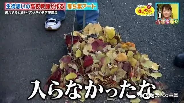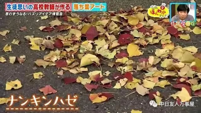 日本读卖电视台的综艺节目「大坂ほんわかテレビ」最近前去奈良县的县立高田高等学校,採访一位靠着创作落叶艺术,频频在社群网站掀起话题的老师滨崎祐贵(字幕还把人家的名字打错了)。