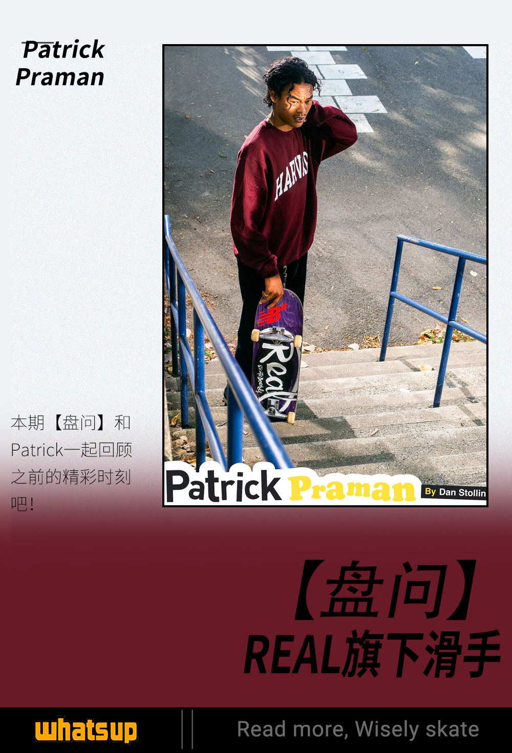 近期你能经常在社交媒体上看到REAL旗下滑手Patrick Praman的滑板影片,从泰国到弗吉利亚州,再到放弃学业选择搬到加州从事滑板职业,Patrick一路以来的滑板历程算不上太容易。