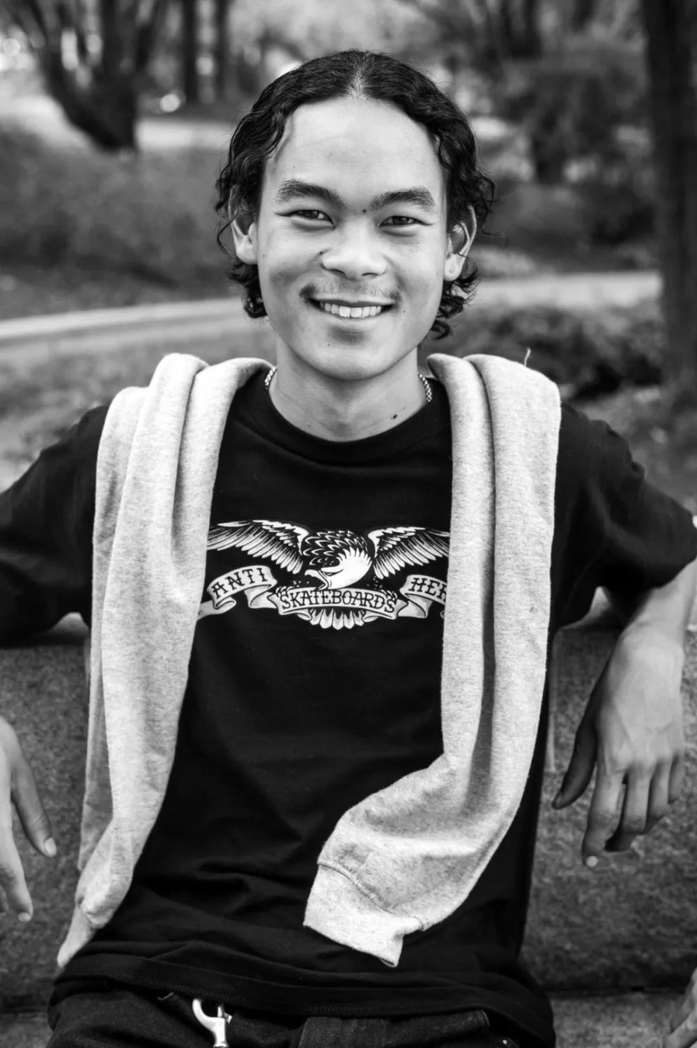 我来自泰国。我出生在曼谷,然后在我七八岁的时候搬到了美国。我说自己来自弗吉尼亚州是因为那是我长大的地方,但我小的时候是在泰国长大的。我在弗吉尼亚州开始滑板,并在弗吉尼亚州和北卡罗来纳州地区开始拍摄影片。