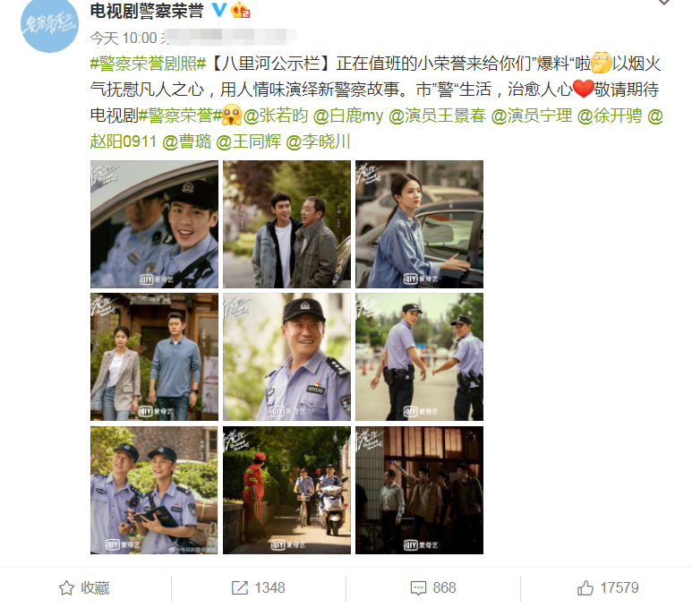 最近冒出来的新剧可是不少呢,一些新剧官宣定档,也有一些新剧官宣演员的剧照,看来不久之后观众又有新剧可以追了,比如说这一部《警察荣耀》,这部剧讲述的是一位年轻警察通过老警察的合作和言传身教下成为了一位优秀合格的人民警察的故事。这部剧获得不少观众的期待,因为剧中邀请到的演员阵容就很让人喜欢和激动,近日官方微博上官宣了演员的剧照,也是人物海报之后第二次官宣出来的剧照。