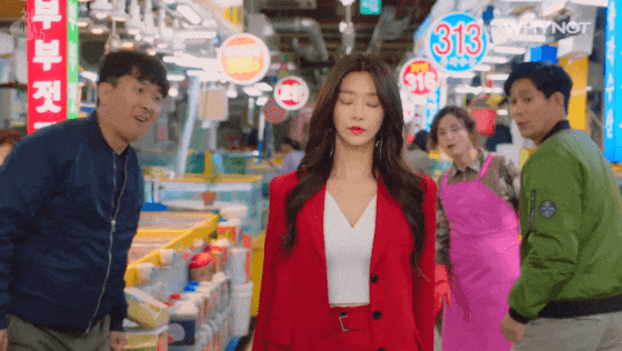 即使拉着平平无奇的买菜车穿过海鲜市场,众人也无法抵挡她全身散发的迷人气质。