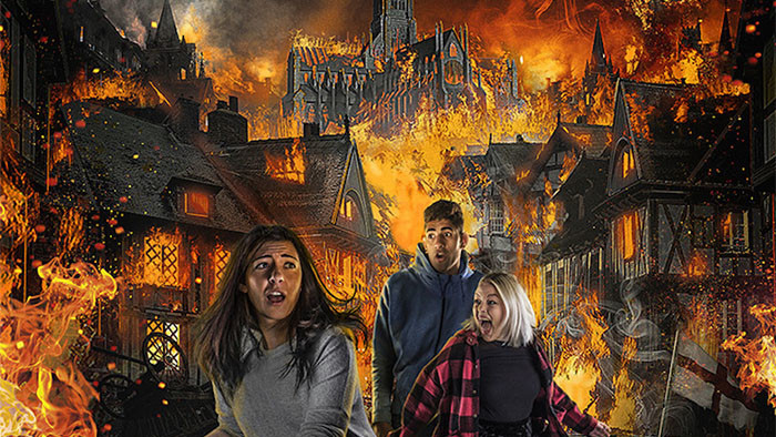 还原1666年发生的伦敦大火场景,一阵大风吹过,周围全是木制的房子瞬间起火,大火席卷整个城市,所到之处都成了一片汪洋大火。直到第4个夜晚风停了,大火才熄灭。这场大火造成的损失非常惨重。古老的圣保罗大教堂、87座教区教堂、许多重要的商厦、无数的店铺以及1.3万多间民房都被毁掉了。灯光的变换,感觉自己犹如置身大火之中,感觉死亡来临的气息。
