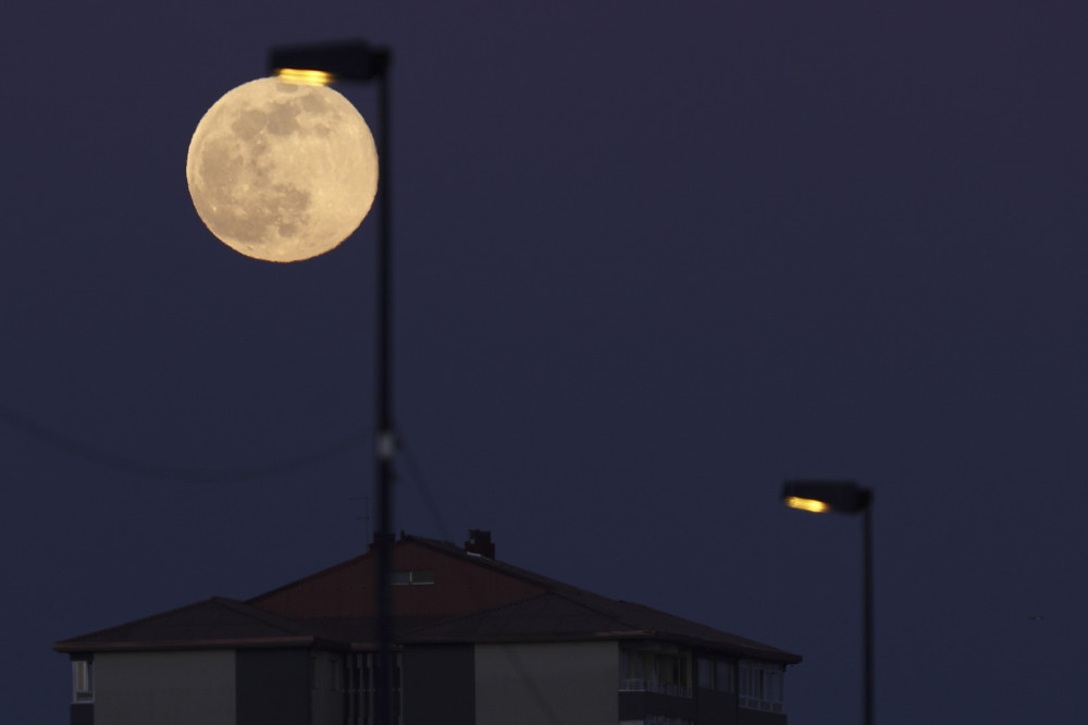 这是2月5日在西班牙维哥上空拍摄的满月。新华社/欧新