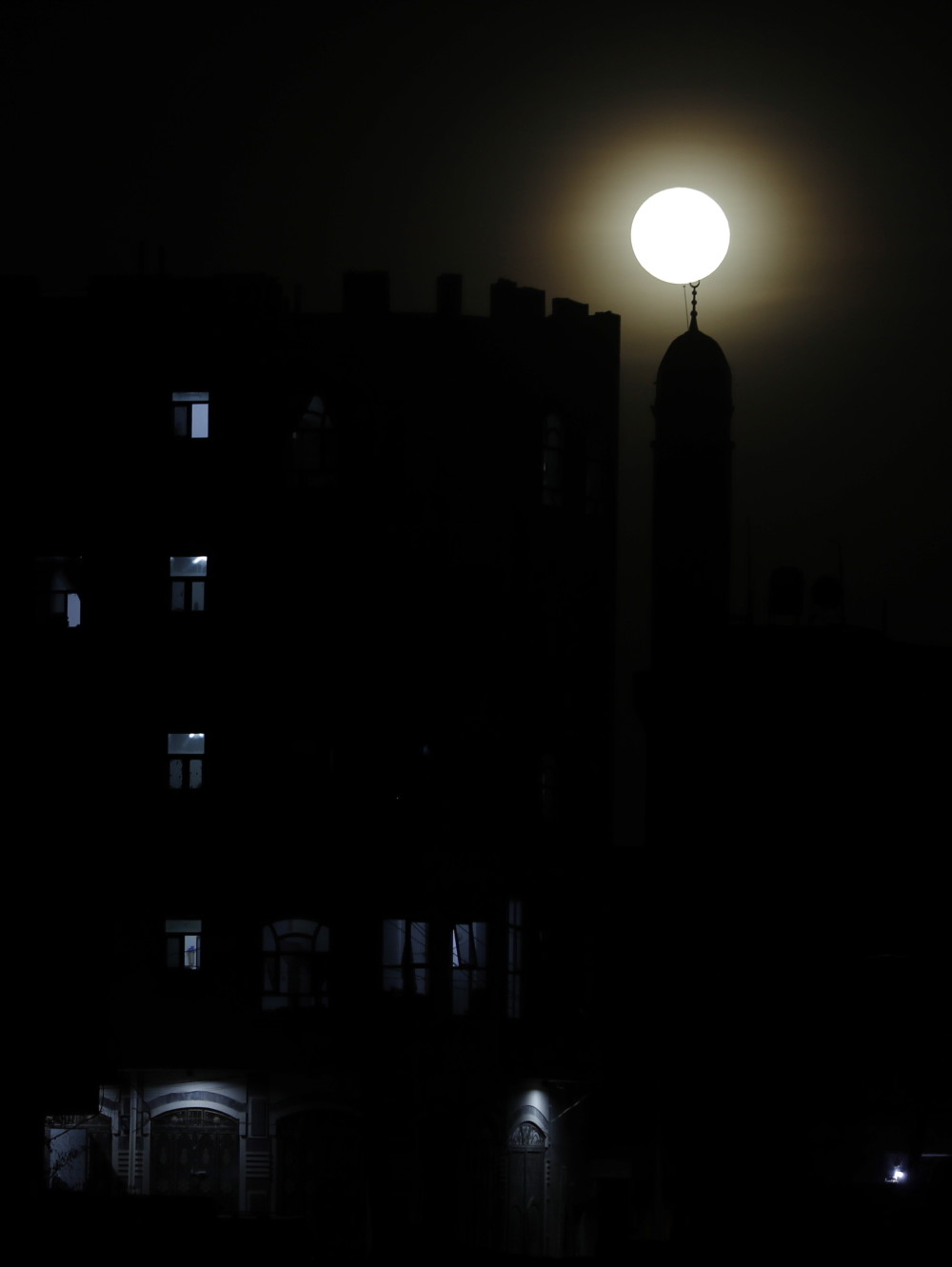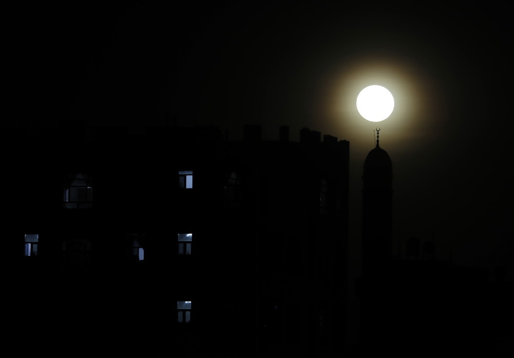 这是2月6日在也门萨那上空拍摄的满月。新华社/欧新