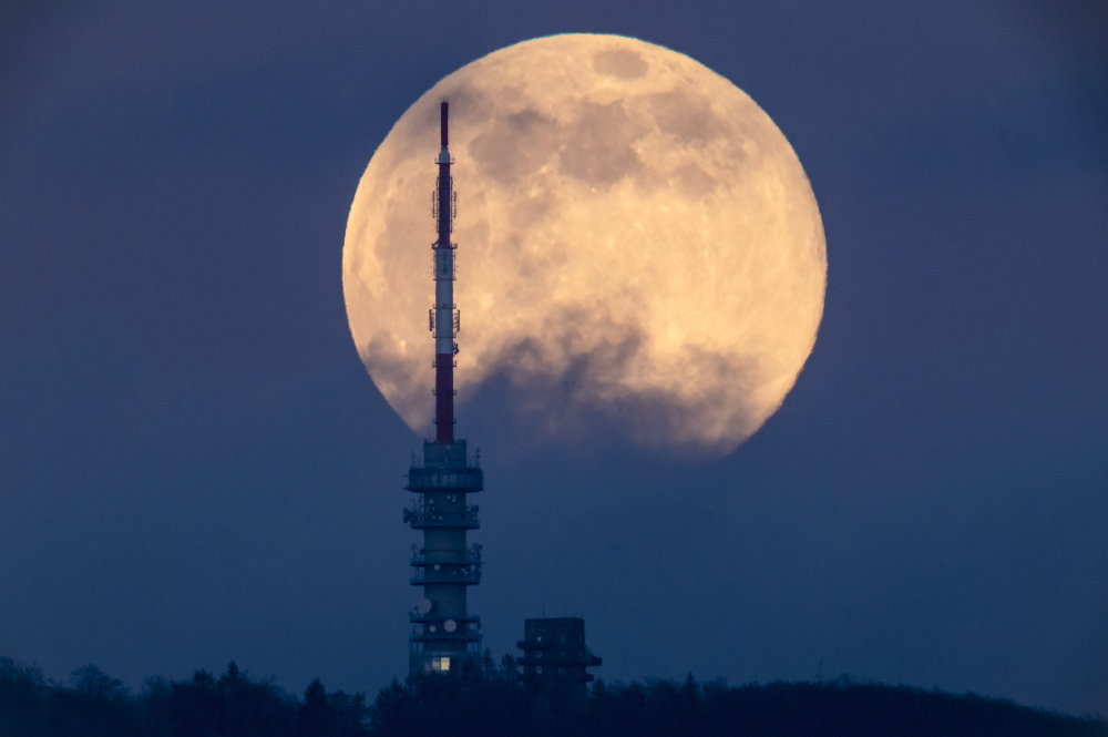 这是2月5日在匈牙利真哲什陶尔扬上空拍摄的满月。 新华社/欧新