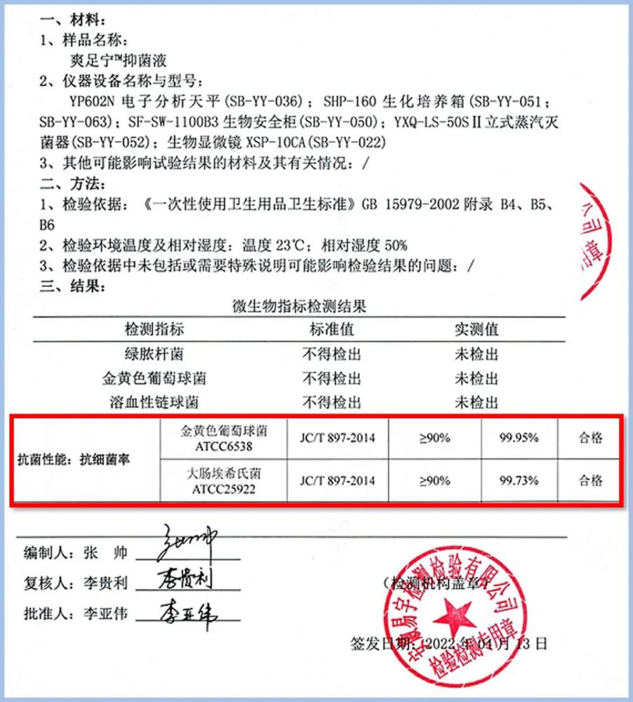 这款产品的击菌力都是经过国家检测的,针对致臭、致痒菌消灭率高达99%:
