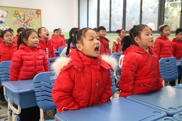 泰州市海军小学校长许娟介绍,学校在寒假期间,便从低年级开始,开展《满江红·写怀》和《春江花月夜》的诵读活动,通过视频示范、线上教学指导以及班级群滚动打卡等形式,让孩子们在背诵过程中,了解高港地方文化,感受岳飞的精忠报国之心和拳拳赤子之情,以此勉励全校师生不畏艰难、勇于突破、不断攀登。