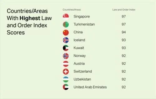 不久前,全球知名咨询公司盖洛普发布了最新的全球法律与秩序指数排名,俗称“走夜路指标”。在这个排行榜上,中国排名第三,成绩可以说相当不错。