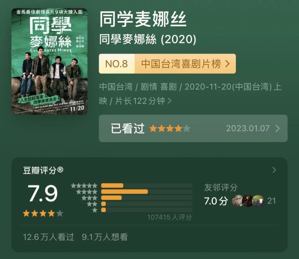 《同学麦娜丝》导演:黄信尧,主演:施名帅 / 郑人硕 / 纳豆 / 刘冠廷