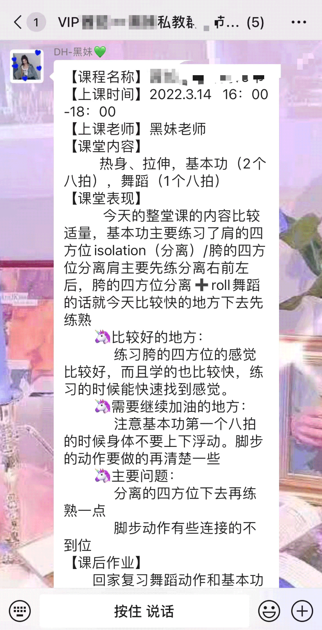 说真的,虽然价格比较贵,但是体验感和学舞效率真的太好了!后悔没有早点上!”