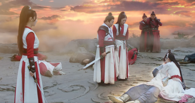 在第13集,凡人男主为救女主而牺牲时,此时画风已有着虐恋的趋势。