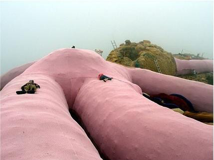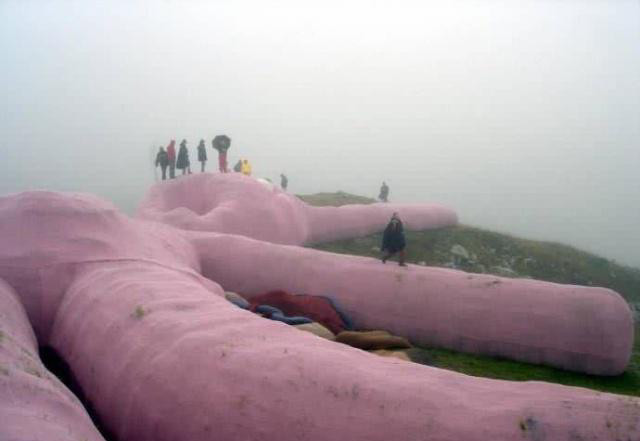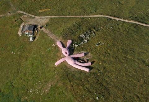 就在这样的一个山上有一只沉睡的巨型兔子,这只兔子被称为是世界上最大的玩具兔子。这只兔子由意大利的一个艺术团队,花费五年时间,用羊毛布缝制而成,这只兔子是用柔软的防水材料做成,内部的填充物是麦秸。兔子总体呈粉红色,整个造型显得异常呆萌。这个艺术团队一开始想要打造这个兔子,是为了向路过的游客们可以躺在软软的东西上休息,这只兔子足足有60米长,直立起来有1栋大厦那么高,这也使得它成为阿尔卑斯山脉的一个有名的景点,试问谁不想突破二次元,体验一下本该出现在动画片里的场景呢?