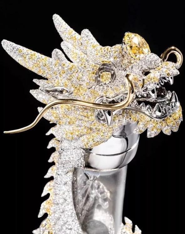 这款酒是同类酒中可以称得上惊于世人的存在,名叫“巨龙之眼”(Eye of The Dragon)。就在最近的上海国际品牌珠宝中心的开幕式上,美国纽约的斯卡塞利钻石公司就带来了这款“巨龙之眼”伏特加参加了展览,现场估价高达550万美元(不含税)。