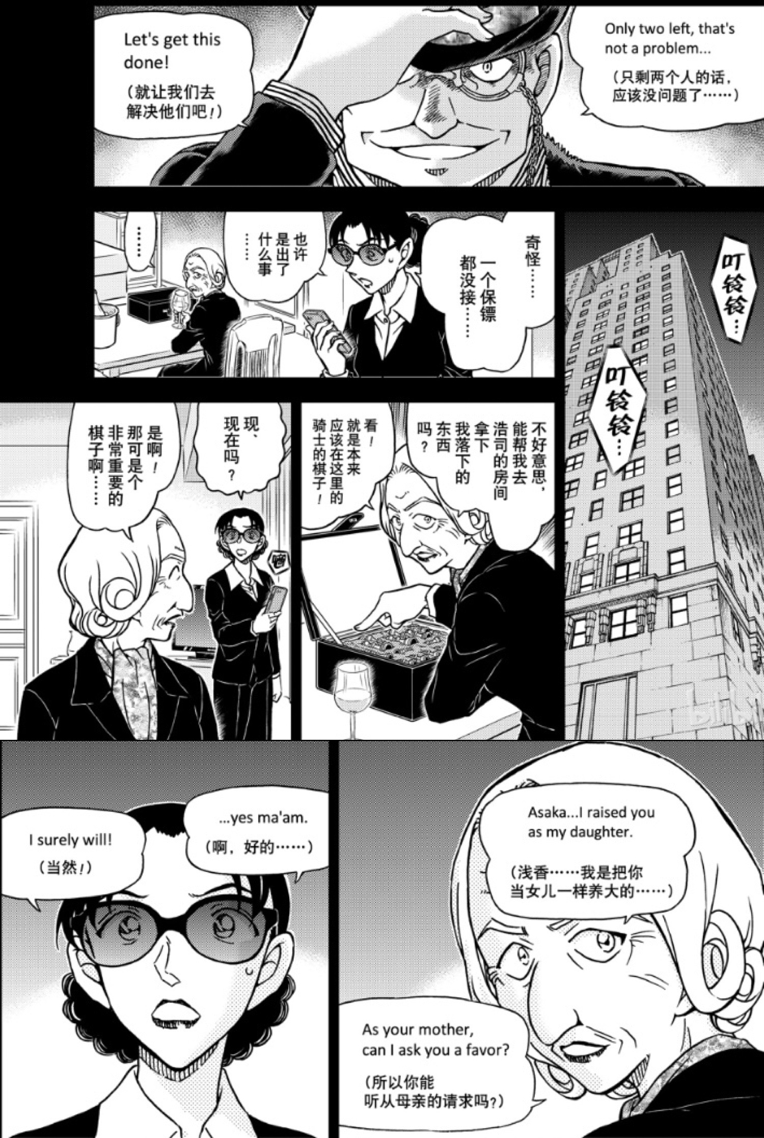 7. 朗姆亲自带人前去解决阿曼达。房间内,浅香发现所有保镖都失去了联系,阿曼达见状打算支走浅香,以“养母”的身份为要求,让浅香立刻去浩司房间取回落下的骑士棋子;