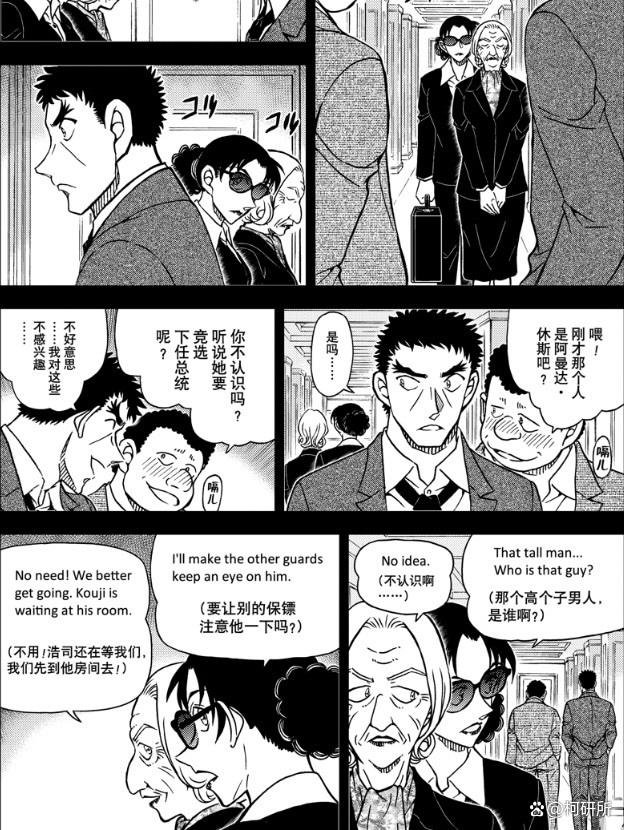 1. 黑田向柯南讲述17年前阿曼达·休斯死亡事件。当年来到美国休假的警察黑田(所属部门与降谷零相同)与友人一起在美国观看国际象棋大赛,在下榻的酒店与阿曼达和保镖浅香擦肩而过;
