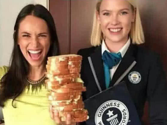 3、把10片面包涂满黄油用时最短。2016年11月13日,美国的亚莎·里奥演示了惊人的速度,用26.19秒的飞速将10片面包涂满黄油。虽然这是一项很简单的挑战,但要在这么短的时间涂抹好,也并未那么容易。