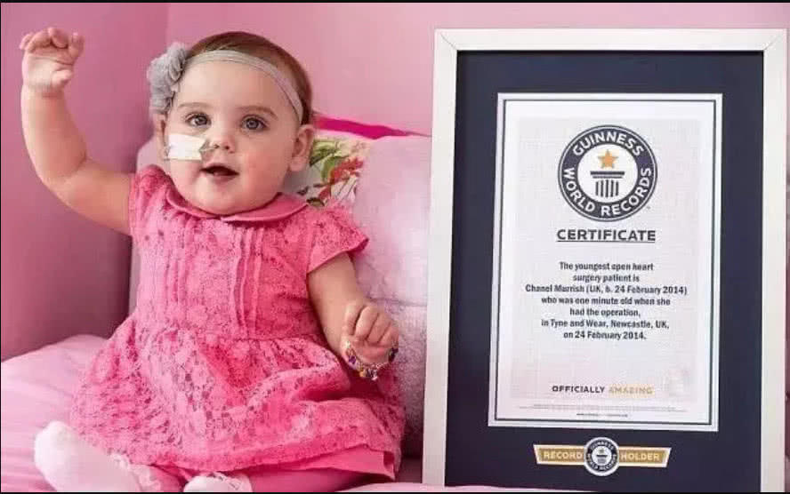 6、做心脏手术最年轻的人,这个小宝宝其实有点可怜,因为她天生只有一半心脏,患有左心发育不良综合征(HLHS),这创造了一项吉尼斯世界纪录——世界上最年轻的心脏手术病人!她是做心脏手术最年轻的人,万幸的是,手术一切顺利,孩子的生命得到了保障,可以说刚刚出生就破了世界纪录了。